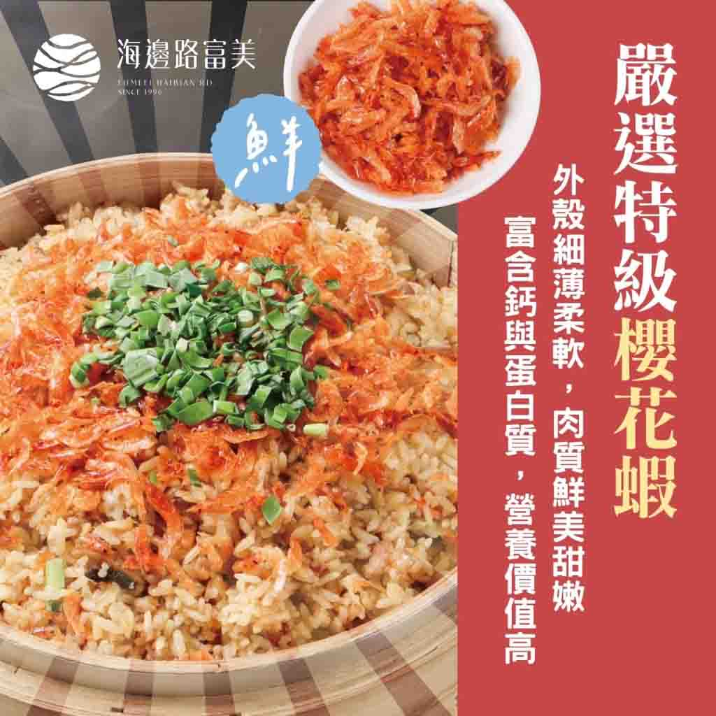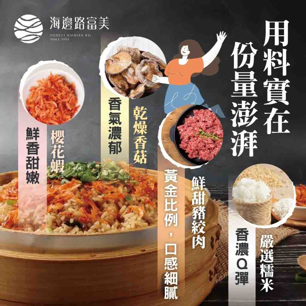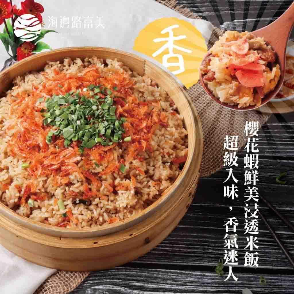 ⭕成分:糯米、櫻花蝦、醬油、糖、食用油、蒜頭、薑、香料、紅蘿蔔、玉米、青豆、蝦米(出貨時櫻花蝦會另外放置)